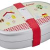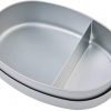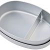 Thiết kế nắp đậy và dây thun để nắp không bị rơi ra , bên trong khay đựng có 1 miếng nhôm chữ L để chia vách ngăn, có thể hâm nóng và dùng lò vi sóng (tháo dây thun và nắp để bên ngoài)