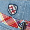 Họa tiết sọc viền xung quanh nón và lớp lót bên trong của vành nón rất nổi bật, đi kèm là dây và nút rút để điều chỉnh kích thước cho vừa vặn với đầu