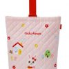 Còn họa tiết thỏ và ngôi nhà cùng vườn hoa in trên sản phẩm màu đỏ cho bé gái